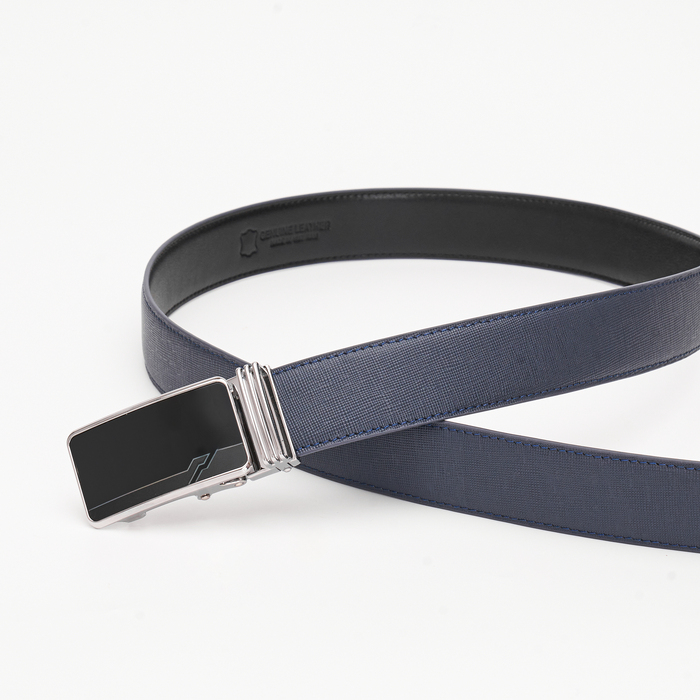 – Thắt lưng da trơn thiết kế đơn giản phối 2 chất liệu da với 2 màu khác nhau. Bề mặt trên màu Navi, bề mặt dưới màu nâu tối.